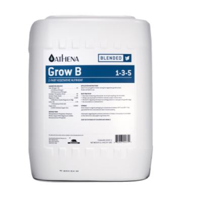 Athena Grow is a simple and clean formula designed for the vegetative stage of growth and for non-flowering plants. Our careful balanced mineral ratios help facilitate optimal plant development including photosynthesis, healthy respiration, and robust stalk and root growth.
