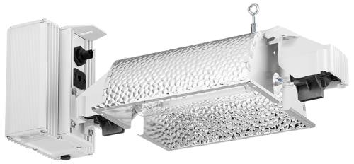 These are packaged bulk for commercial applications and sold in increments of 70 (1/2 pallet). If you equip a larger operation, working on the North American 3 phase systems, you now have the choice of remotely controlling your lights with our Gavita Master controllers. We designed new, multi-voltage electronics to either work with the US 480 V or the Canadian 600 V WYE 3 phase installations, enabling much lower installation costs, more efficient electricity use and ease of installation. Running on a higher voltage (277V or 347 V phase-neutral) these fixtures use less power and are more compact than traditional consumer 120-240V fixtures. The compact fixture contains a lamp, HR96 reflector or W 150 DE for wide configurations and horticultural quality ballast in one comprehensive package. The HR96 DE for overlapping configurations, assuring optimal uniformity and penetration. The W 150 DE for wide configurations, where uniformity and lower light levels are required in large rooms. The fixture’s light source is a Gavita Pro Plus 750 watt double ended HPS lamp, generating 1450 µmol s-1 of light. With a light maintenance of over 96% per 5000 hours you only need to replace it once a year. 1 year warranty on the lamp. This professional fixture requires installation by a certified electrician in an industrial environment. Customer must select cord and mounting options.