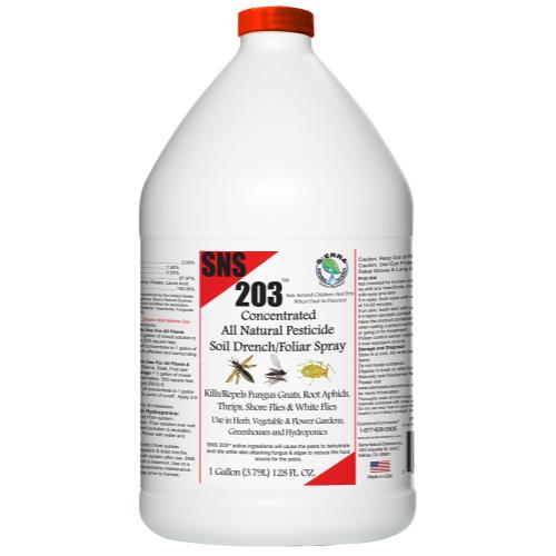 SNS 203 kills and repels fungus gnats, root aphids, thrips, shore flies and whiteflies.